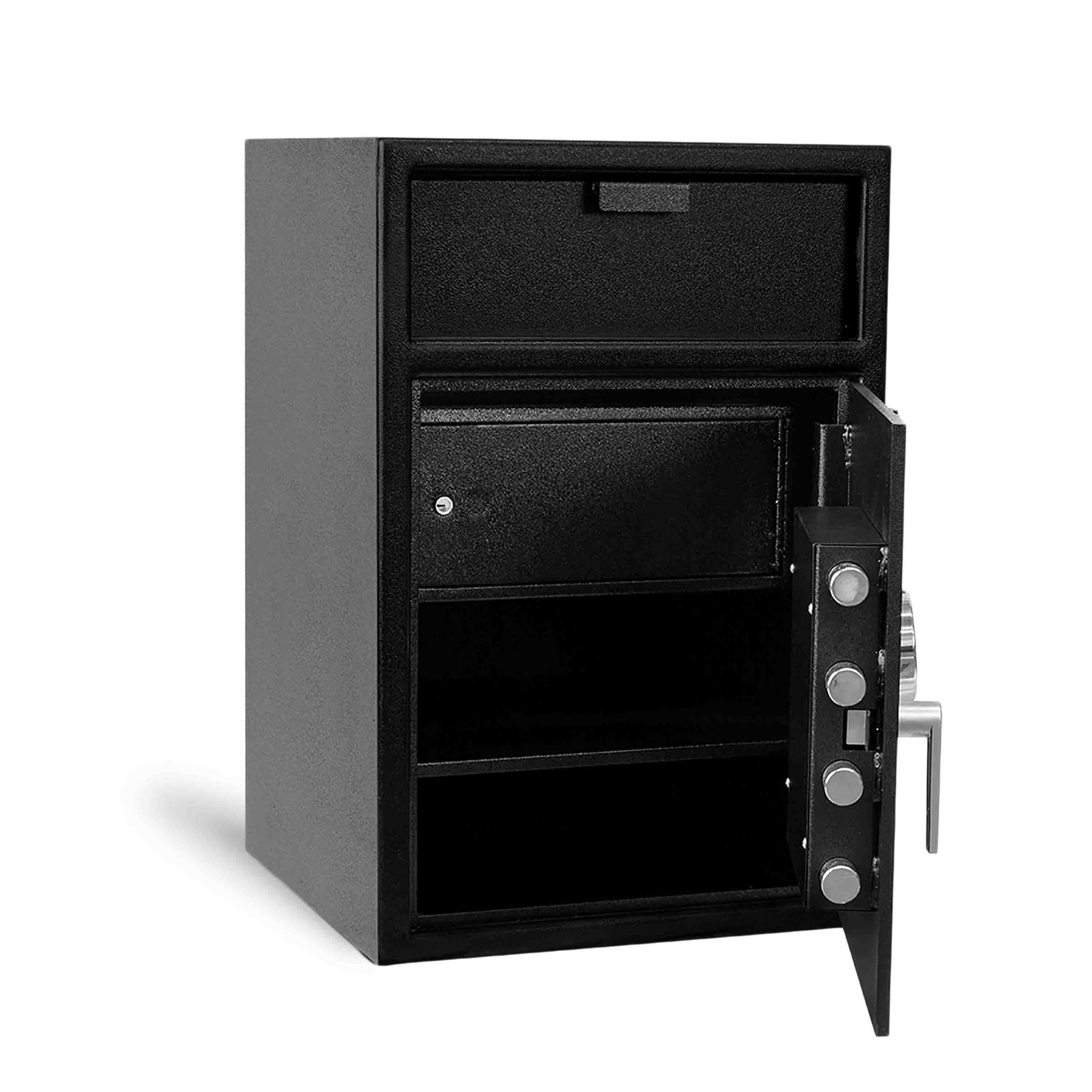 - Front load (mailbox style) depository drop with anti-fish baffles
