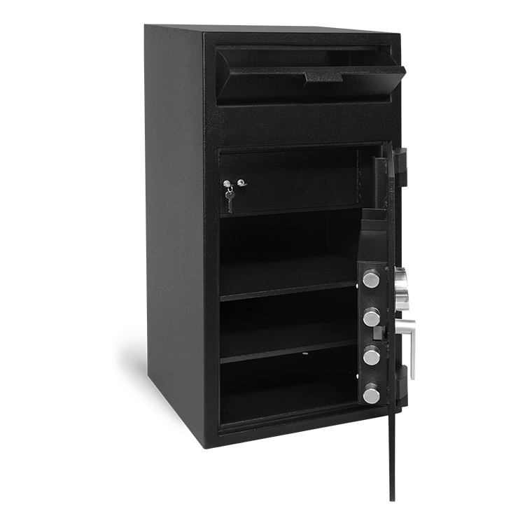 - Front load (mailbox style) depository drop with anti-fish baffles